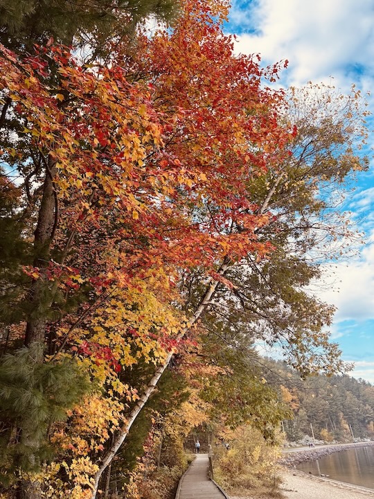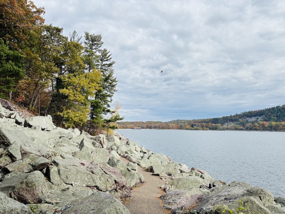 Early in the morning, Samuel and I went to Devilās Lake to see the fall foliage and celebrate our birthdays. Devilās Lake is a state park in Wisconsin. When we came the last time, it wasnāt this crowded, but today there were so many visitors. No surprise, though, the scenery was absolutely stunning.
