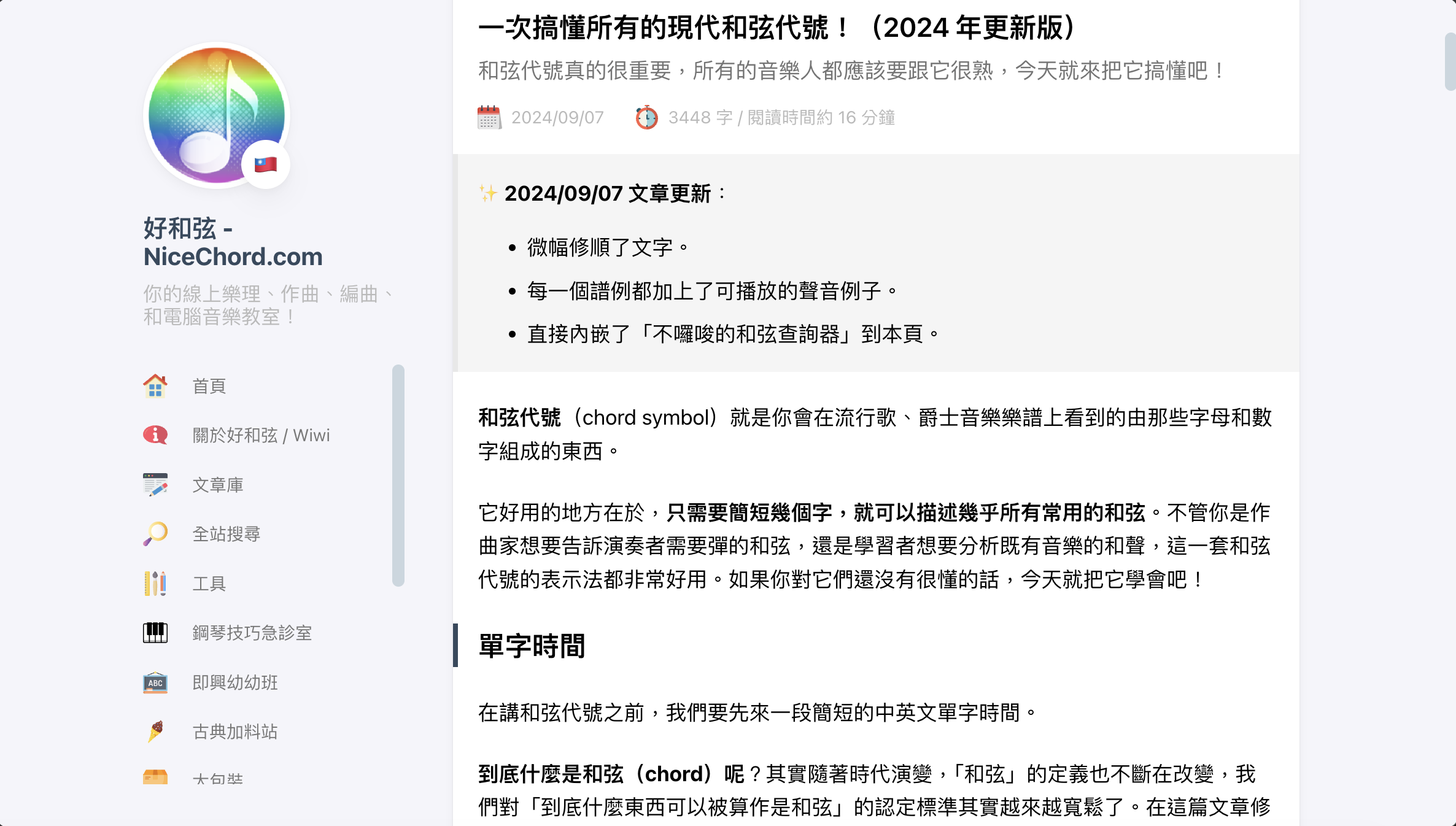 There arenāt many Chinese-language resources on music theory, and among those that are free and publicly available, Iāve only found one that really stands out. That is, NiceChord.com, founded by Taiwanese pianist Wiwi Kuan.