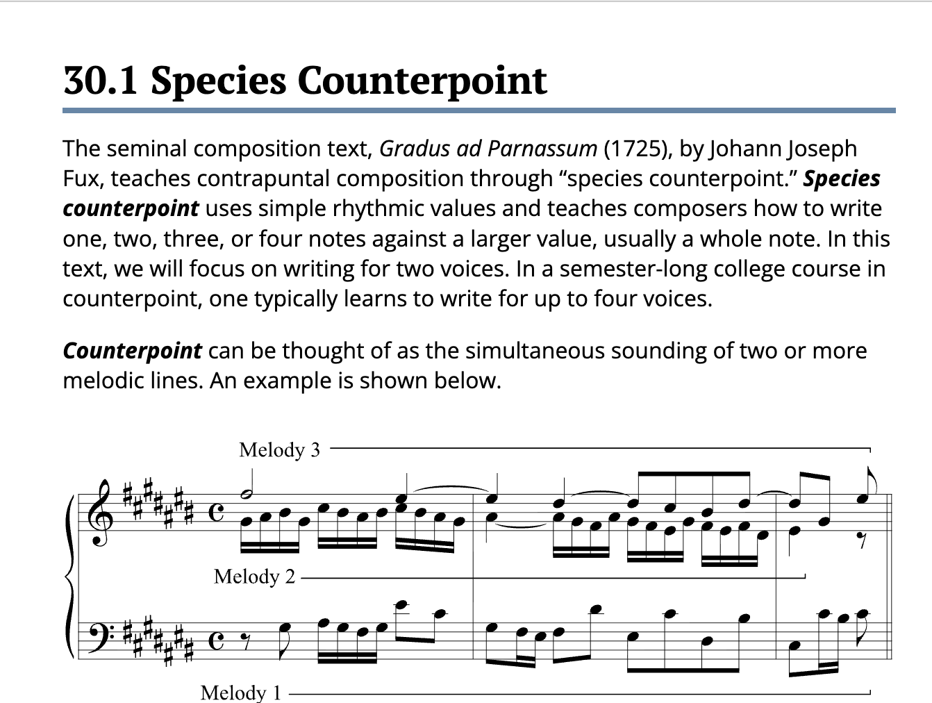 The material starts with basic concepts and goes all the way up to topics like counterpoint, making it suitable for both beginners and intermediate learners.