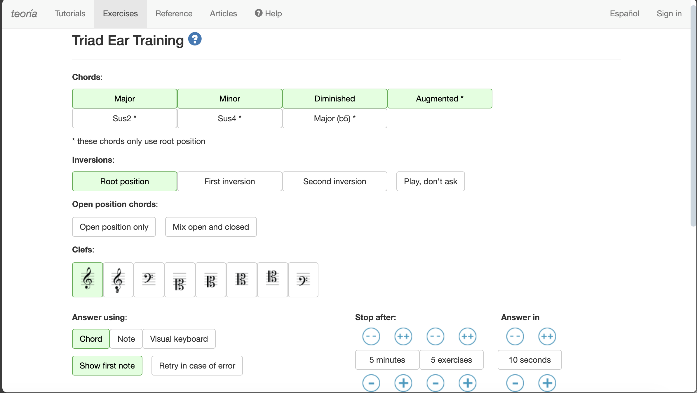 - Thereās a wide range of customizable ear-training exercises. For example, you can select whether to include major, minor, augmented, or diminished triads. Or, just hit the āPlay, Donāt Askā button if you want a surprise quiz. Perfect for students preparing for theory exams or simply testing their ears.