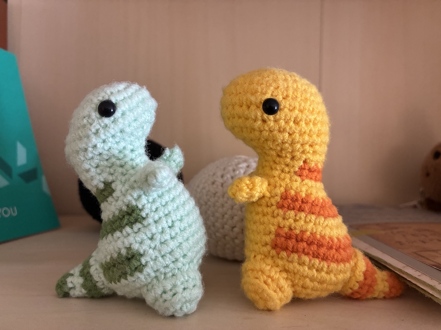 YouTube is full of free tutorials. I recommend starting with Eveline’s Crochet Basic Stitch Tutorials. Once you master the basics, everything else becomes a breeze. Some items look complex, but the principles are simple. For example, cats and dinosaurs are usually made by crocheting the body first, then the limbs, and finally sewing them together. Plus, this skill is like riding a bike—even if you don’t pick it up for a long time, it’s easy to remember.