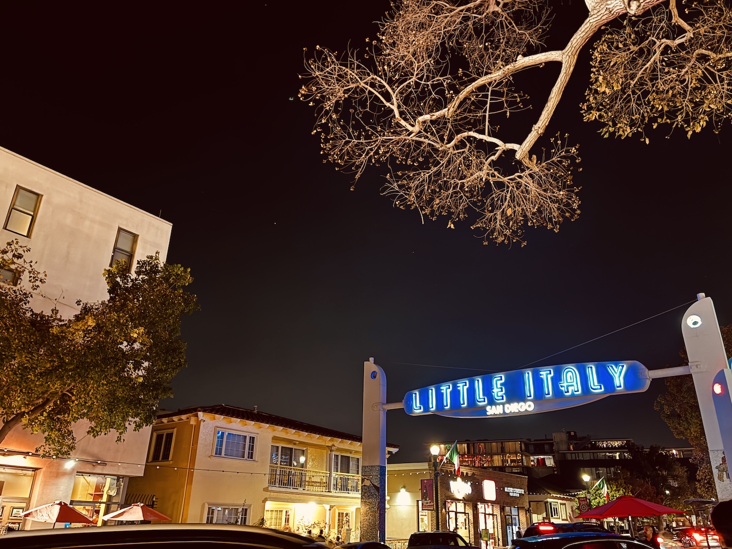 小義大利區就在機場隔壁,而且 MTS (聖地牙哥的電車)會停靠,出入非常方便,一下飛機的餓昏的我們直奔這裡吃晚餐。不得不說,整個街頭都很有義式風情,氣氛很 Chill,幾乎每間店的街邊還有直立式瓦斯暖爐(propane patio heater),客人享受戶外風光之餘,也不會被寒冷侵襲。